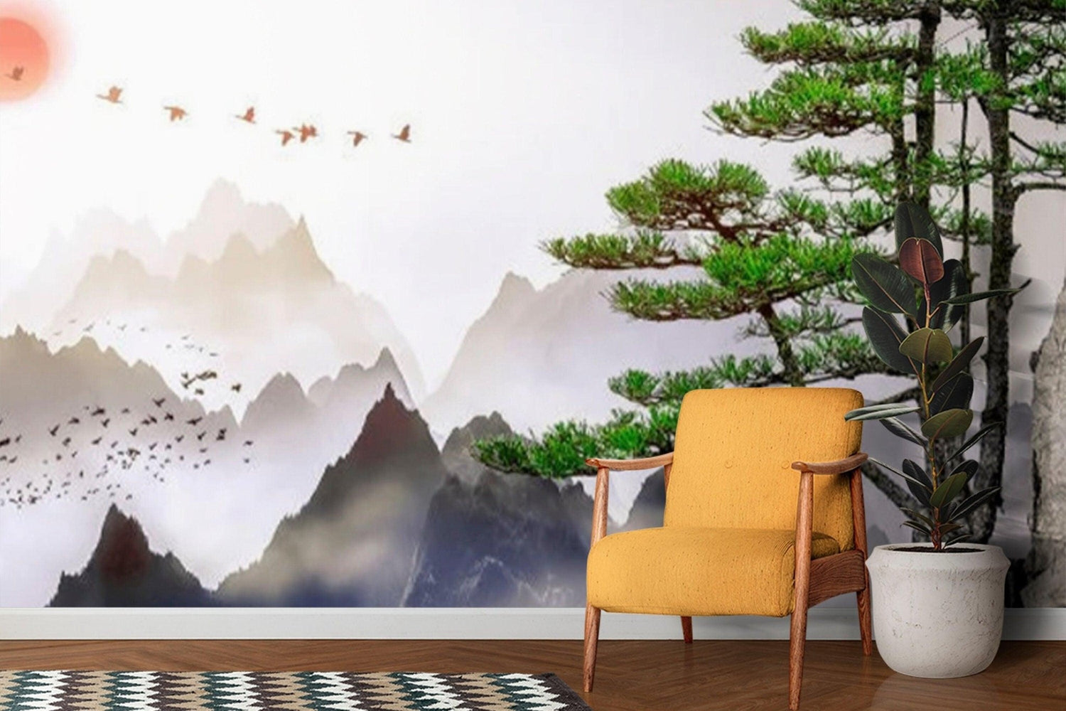 Chinoiserie Wallpaper Peel and Stick Vintage Wall Mural Forest Wallpaper Removable japanese wallpaper