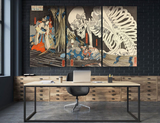 Japanese Art Print Set "In the Ruined Palace at Sōma" by Kuniyoshi Utagawa, woodblock print reproduction Large wall art