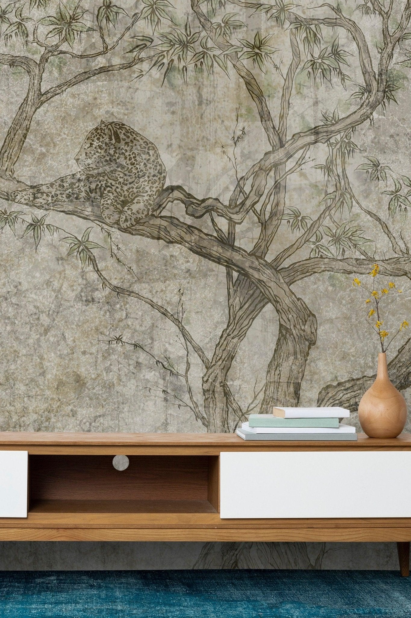 Tiger on Tree Wall mural Chinoiserie wallpaper Japanese wall mural