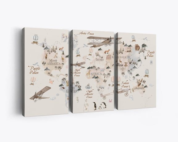 animal world map kids world map print kids room decor wall art large canvas print ready to hung