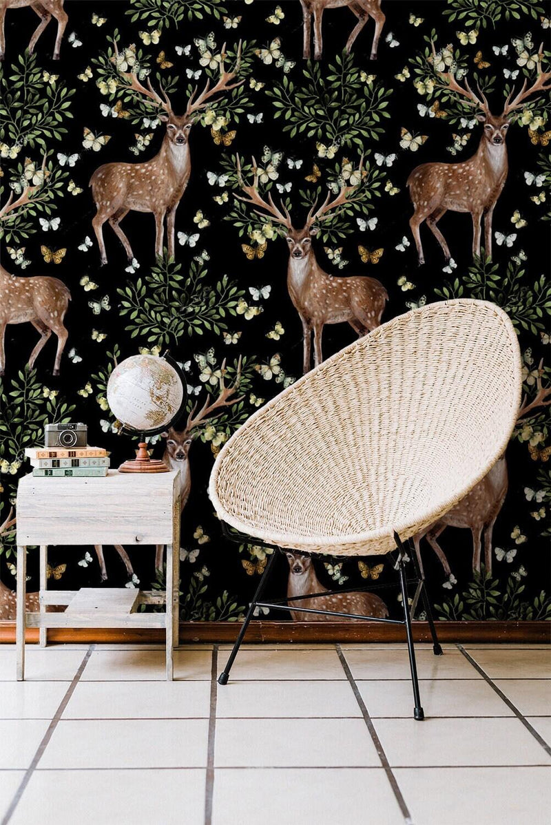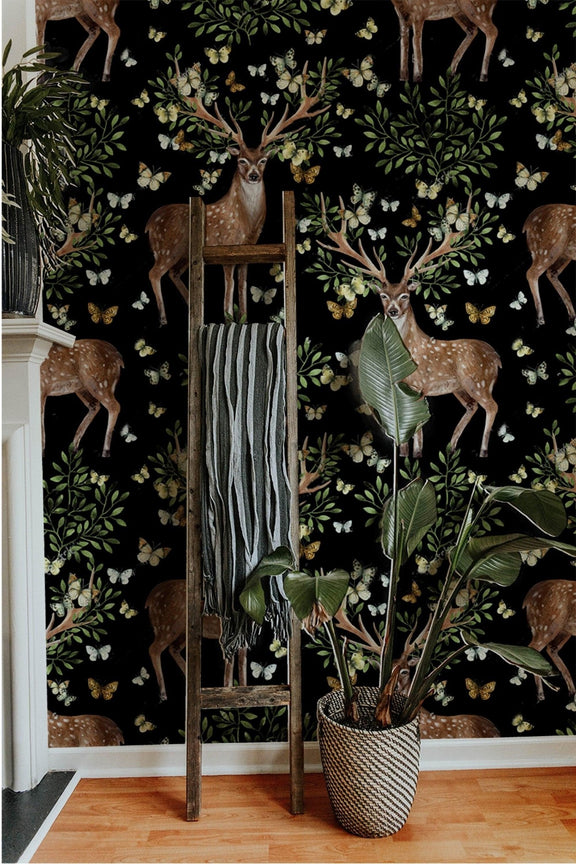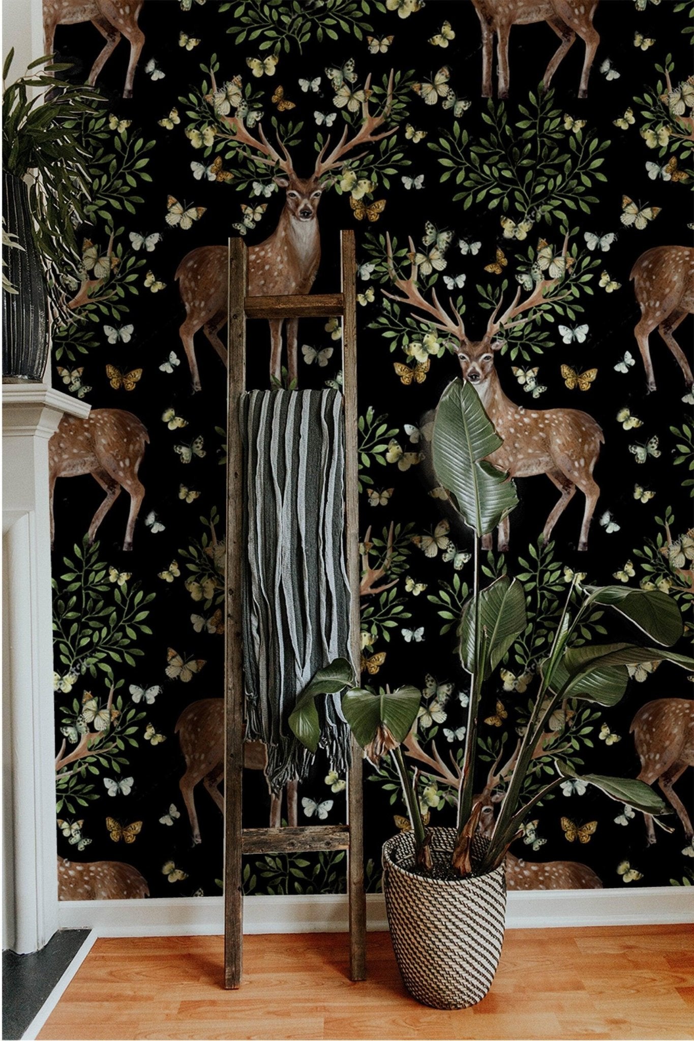 Vintage Wallpaper Woodland Removable Wallpaper Butterfly Branches Peel and Stick Wall mural