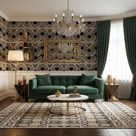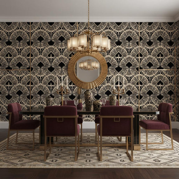 Art Deco Wallpaper | Removable Geometric Fan Wallpaper | Glamorous Statement Wall