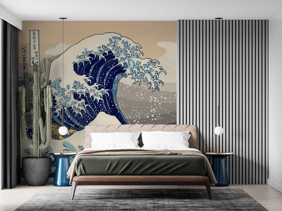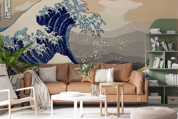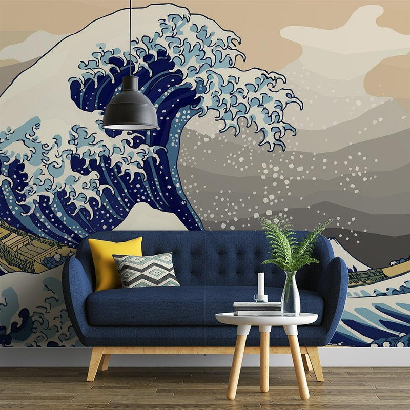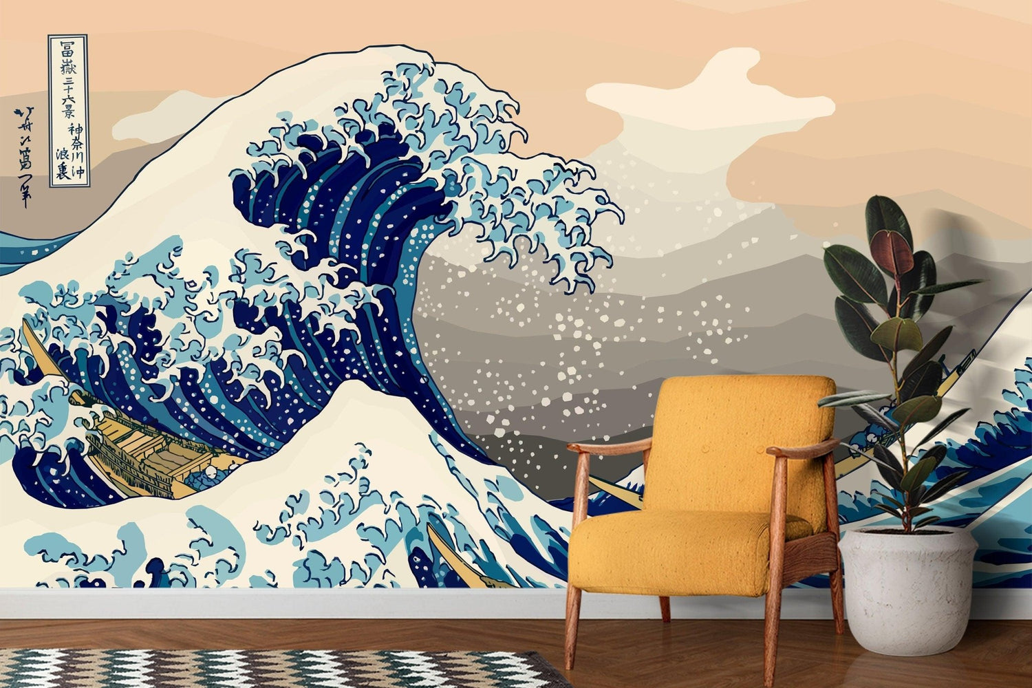 Chinoiserie wallpaper The Great Wave at Kanagawa Japanese wall mural self adhesive or traditional wallpaper