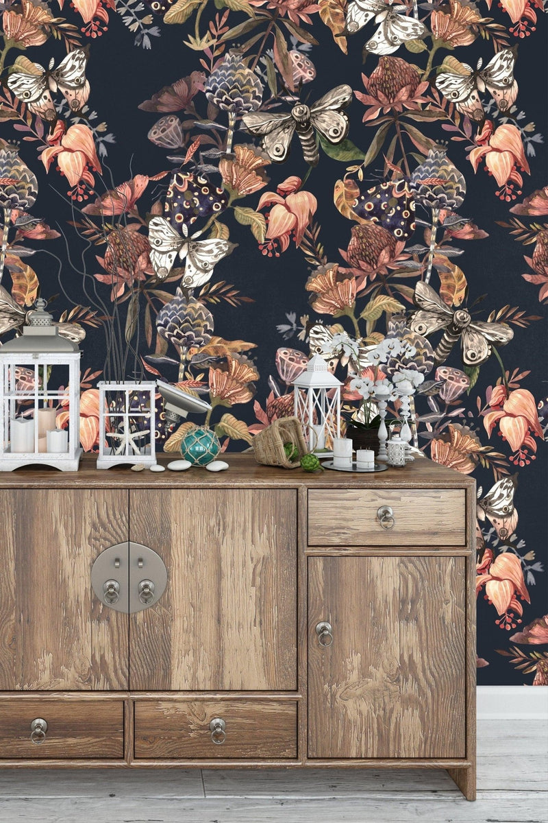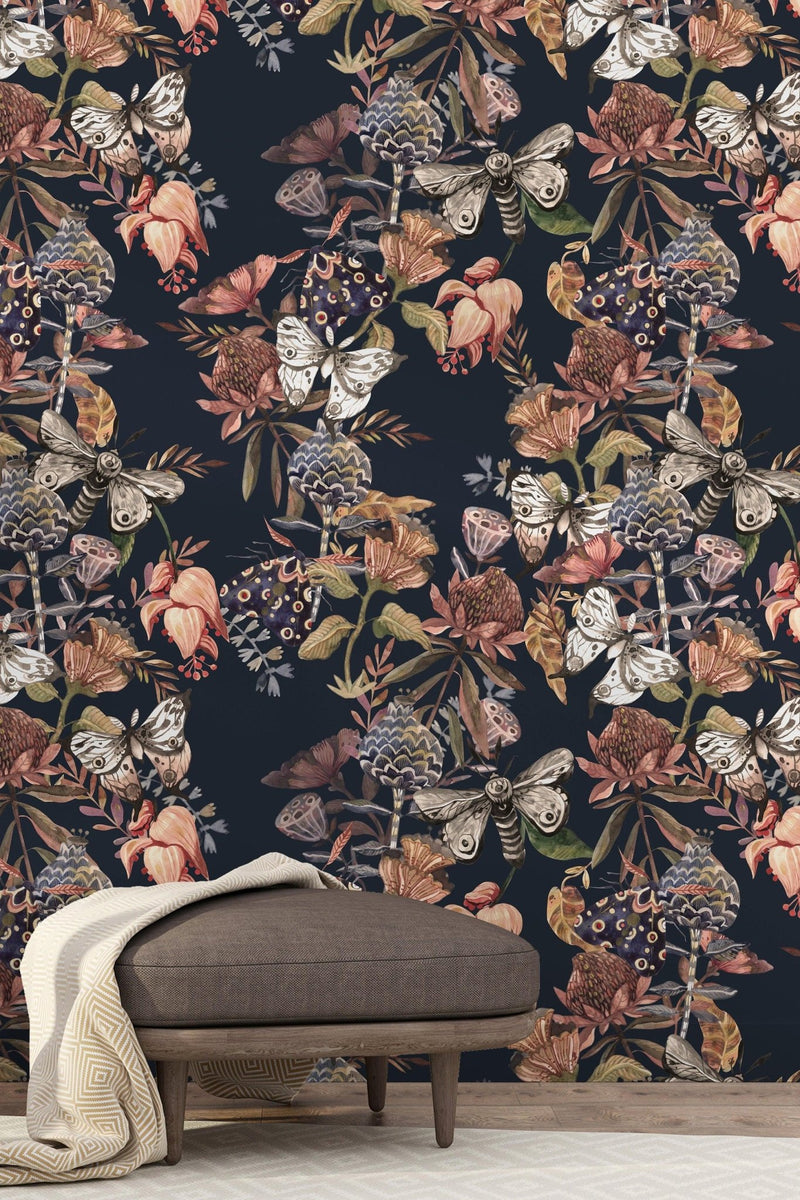 dark botanical wallpaper peel and stick vintage botanical wallpaper flowers wall mural