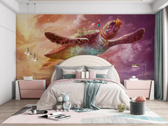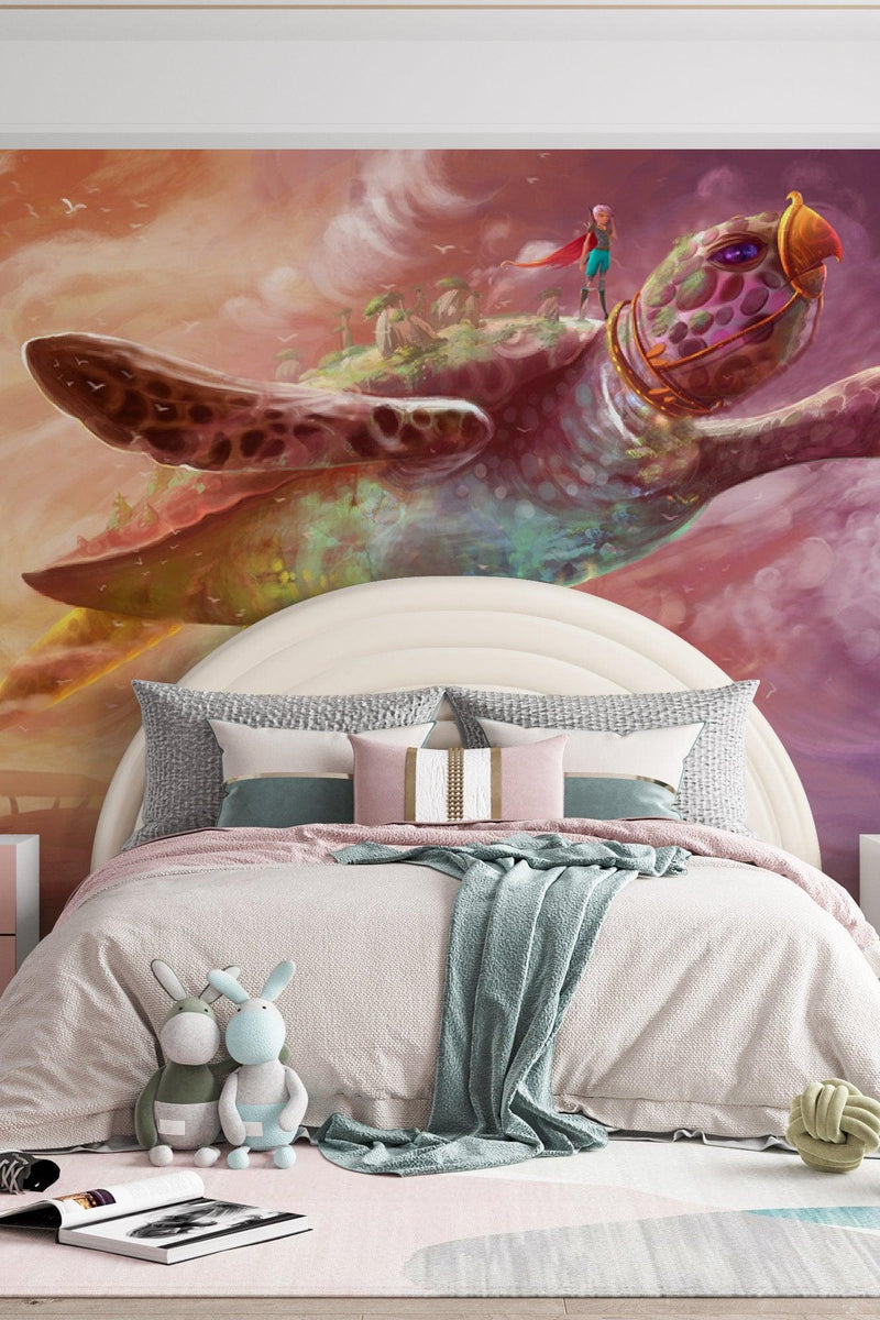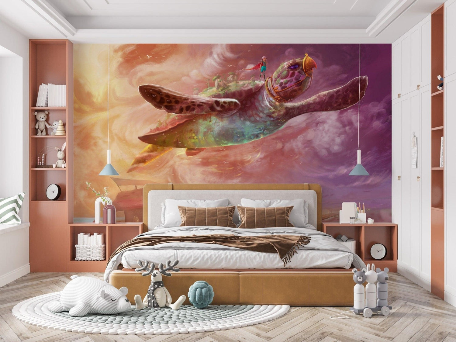 Nursery Wallpaper Magic Wall Mural Fairytale Turtle Peel and Stick Wallpaper Kids Room decor
