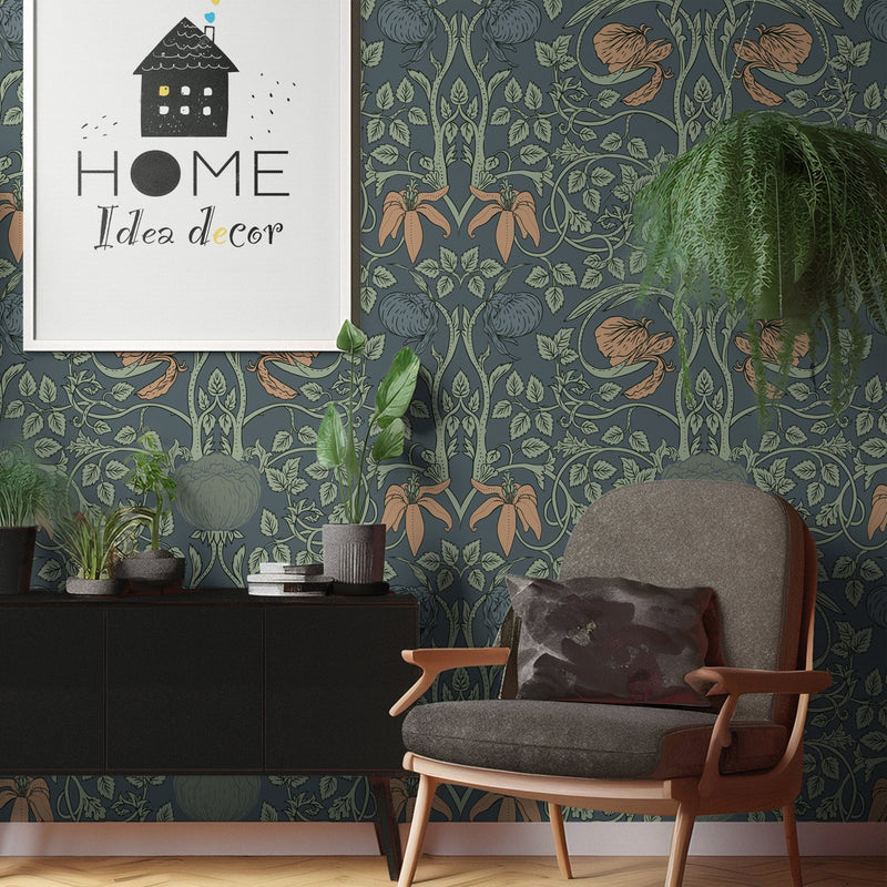 William Morris wallpaper Peel & Stick pimpernel mural, floral wall mural peel and stick or traditional paper